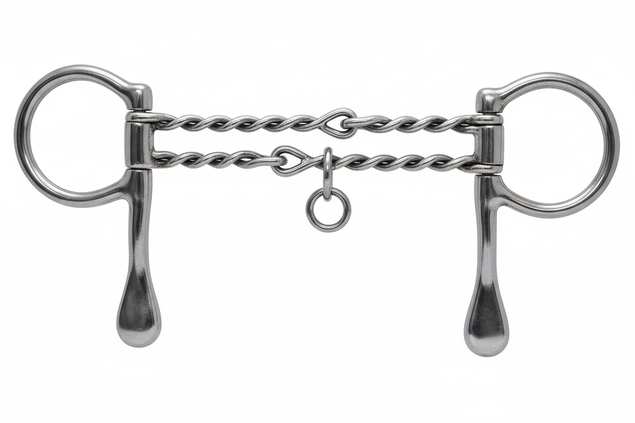 This double-wire twisted driving bit offers a sharper, more defined feel than a smooth or single-twist mouthpiece. Designed for horses that need clearer communication, the double twist provides increased feedback while still sitting balanced and comfortable in the mouth.