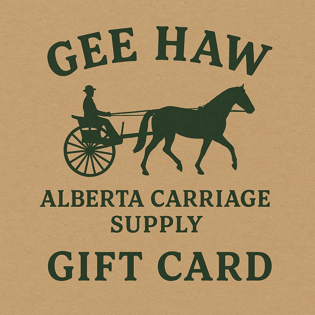 Whether they drive minis, ponies, cobs, or a full team of drafts, an Alberta Carriage Supply Gift Card lets them choose exactly what they need — from carts and harness to wheelwright tools, apparel, and Gee Haw gear.