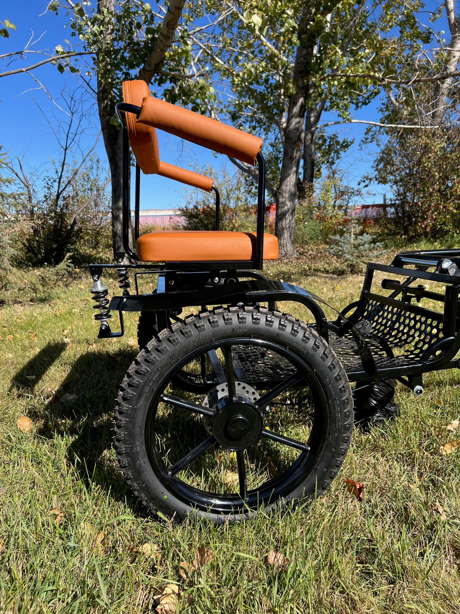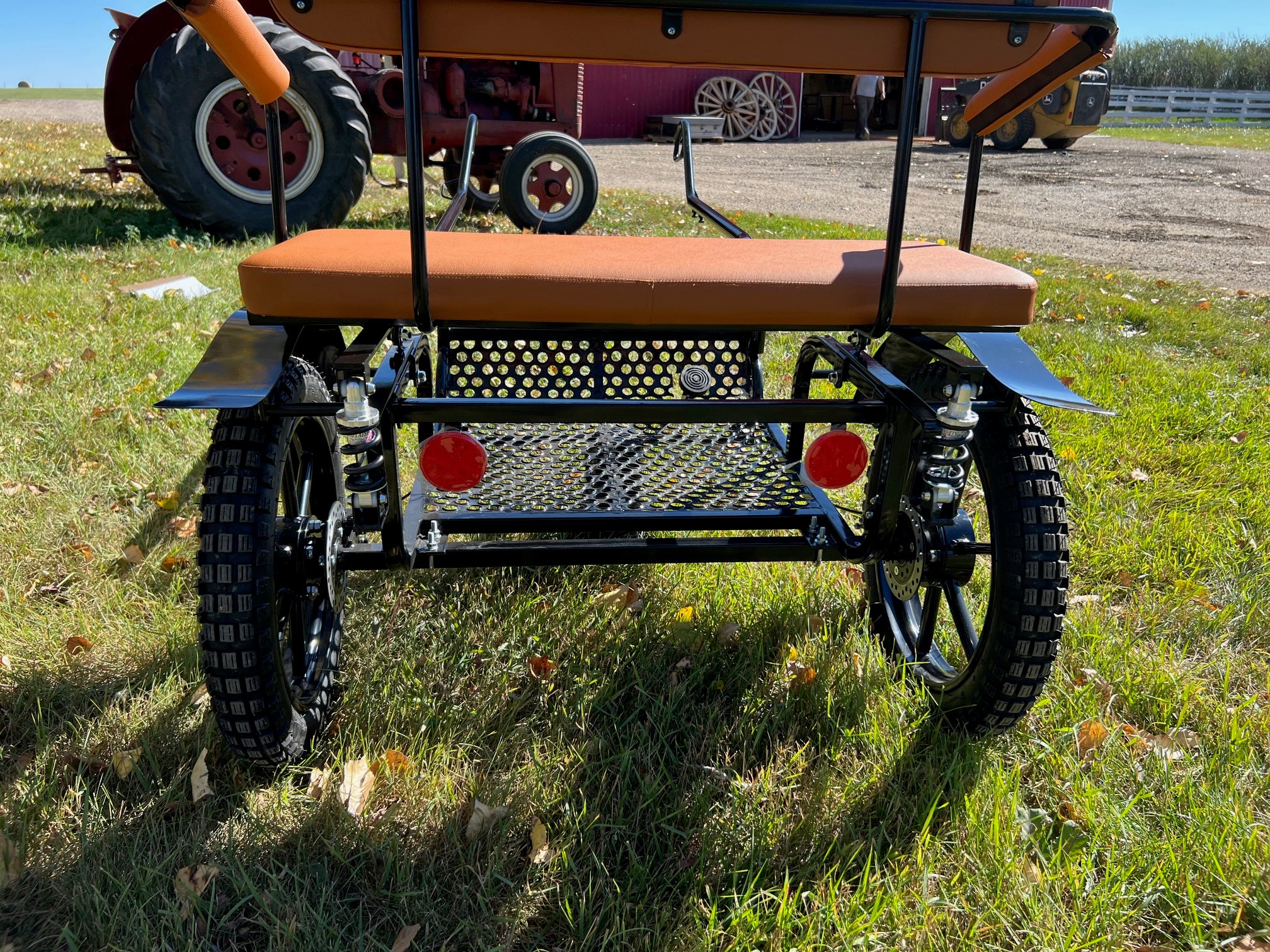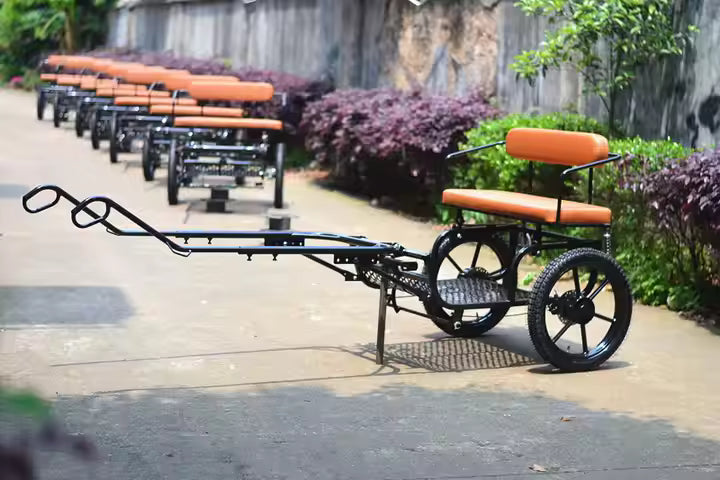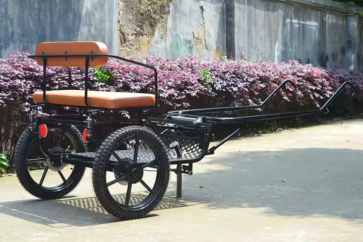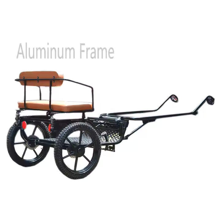 Feel confident and stylish while giving your mini a comfortable ride in this thoughtfully designed mini cart. Crafted from lightweight aluminum for easy handling, it features a cushioned flat bench seat and a pneumatic 16‑inch wheel for smooth, gentle rides. The two‑wheel design accommodates miniature horses, and disc brakes give you extra peace of mind. Certified by CE to meet EU safety standards, this cart combines elegance and security for memorable outings with your mini.